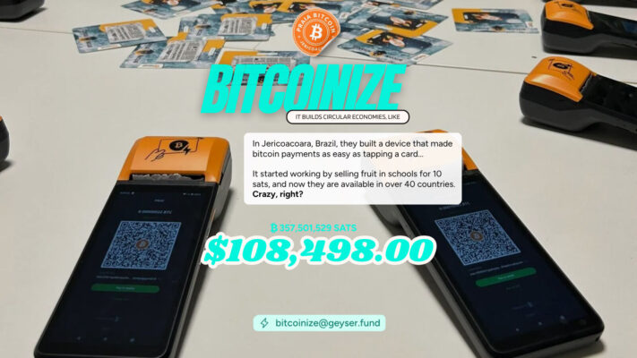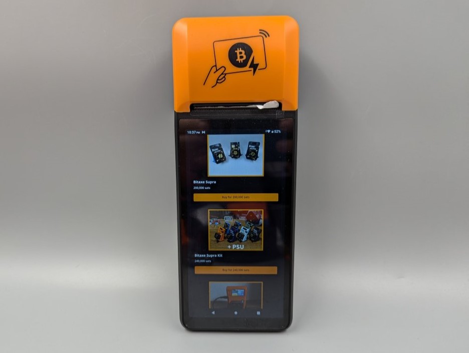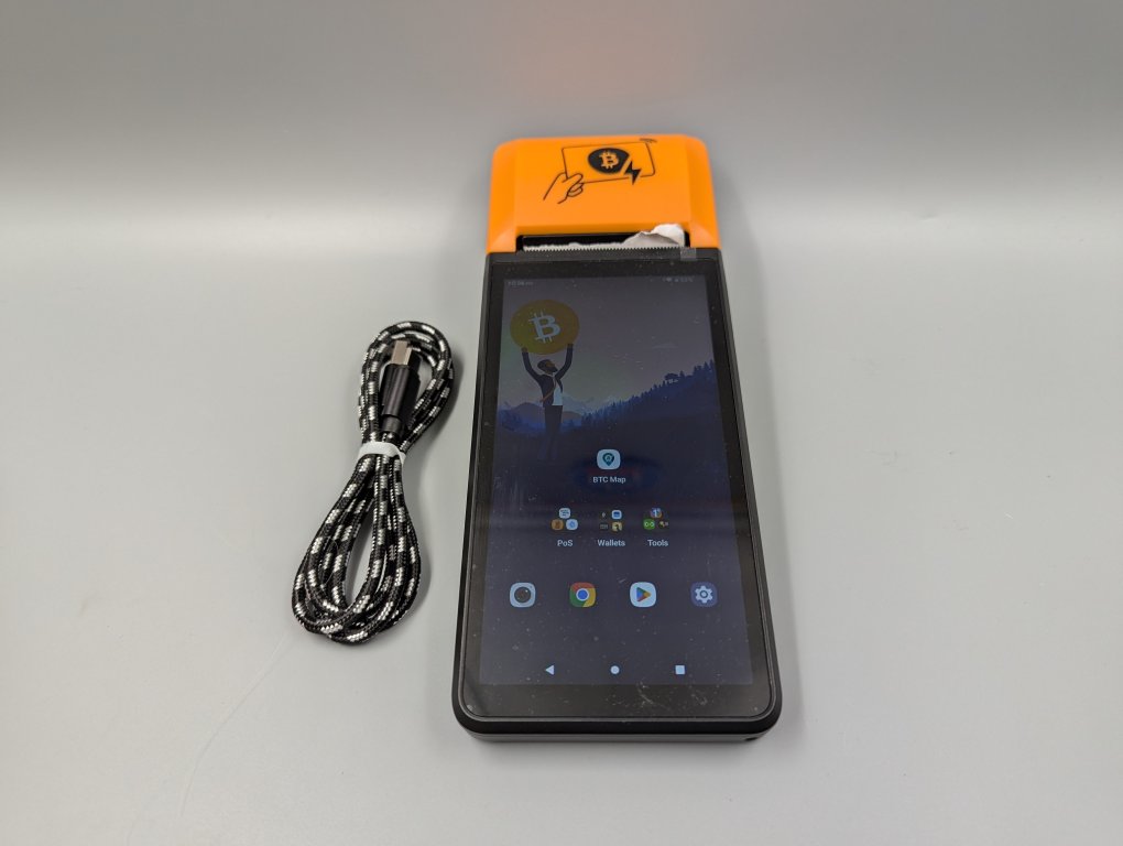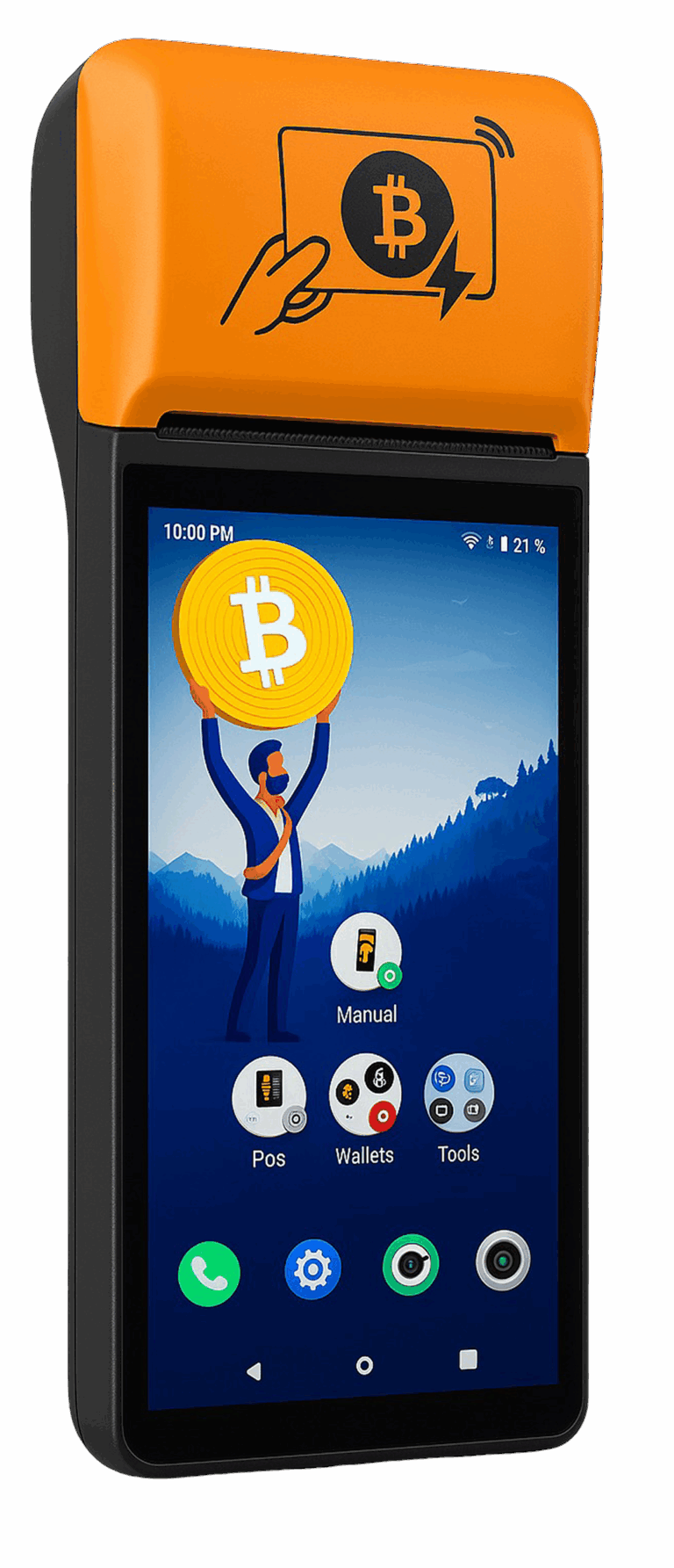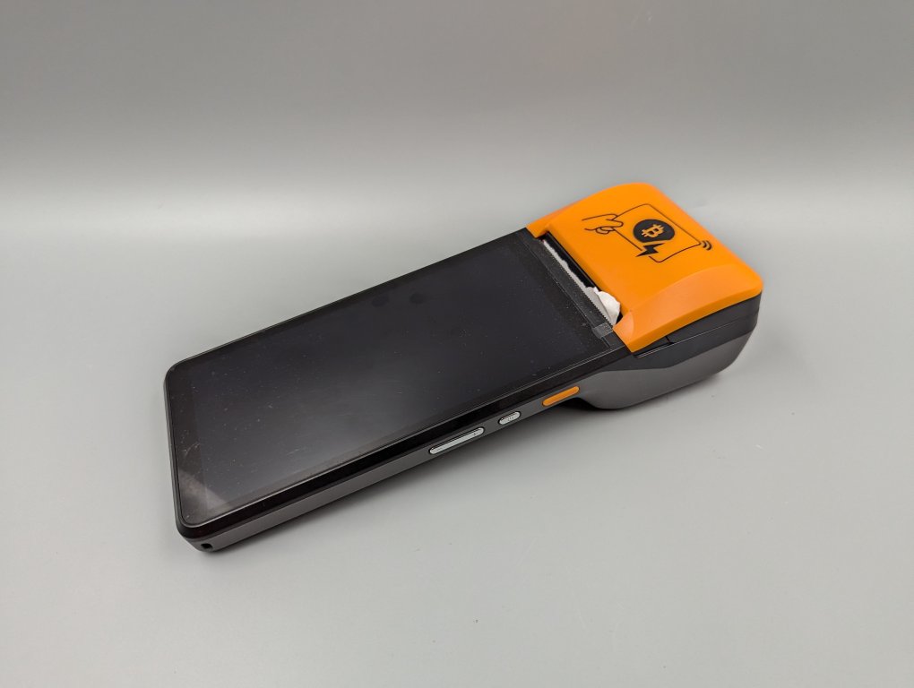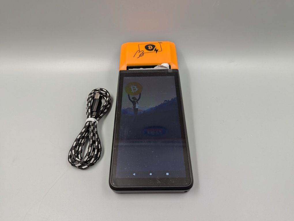 The Bitcoinize POS Machine is a handheld tablet, fully de-Googled and crowdfunded in 2023 by the Bitcoin community on Geyser.Fund.