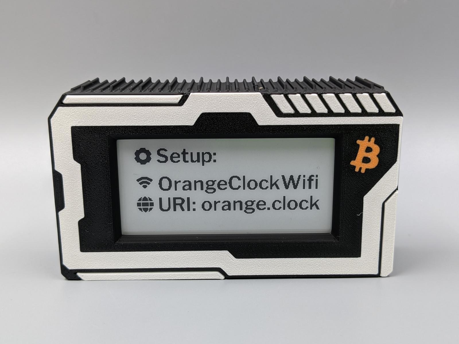 A bitcoin timepiece for everyone. An open-source device displaying the current sats-per-dollar price, aka “moscow time”, block height and mempool fees. The Orange Clock is fully open source, you can build one yourself using our DIY Kit, get a preassembled Orange Clock ready to go or just the enclosure if you want to source the parts yourself. Enclosure only will include the two part enclosure and m 2.5 x 6mm screws needed for the assembly. If you choose the preassembled product, your OrangeClock will come as a readily built device, which you only have to connect to your Wi-Fi. (Wi-Fi is a hard requirement for the OrangeClock, you cannot connect it via Ethernet.) The DIY-Kit includes everything you need to build an OrangeClock yourself.