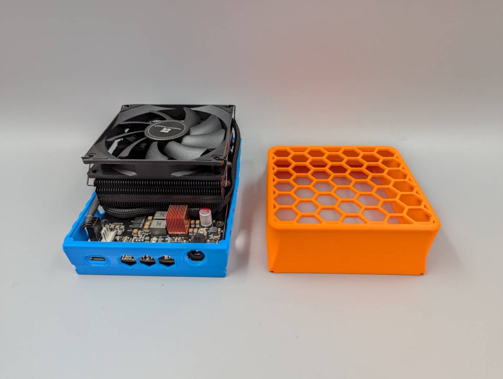 The QAxe+ is a quad-BM1368 Variant, which means it’s four Bitaxe Supras in series, all in one device which is cooled by a high performance 92mm fan. The impressive hashrate ranges from 2,4TH/s to 2,8TH/s with a power draw of around 55W and a noise level of ~ 60db. Comes with a 12V power supply and 3D-printed airflow optimized enclosure. Warning: This device is not plug & play like the Bitaxe. It has no onboard cpu, so it must be controlled by a device like a (not included) Raspberry Pi or your PC, which is running the PiAxe-Miner software available from github. We created this comprehensive guide which covers the setup and how to start the mining.