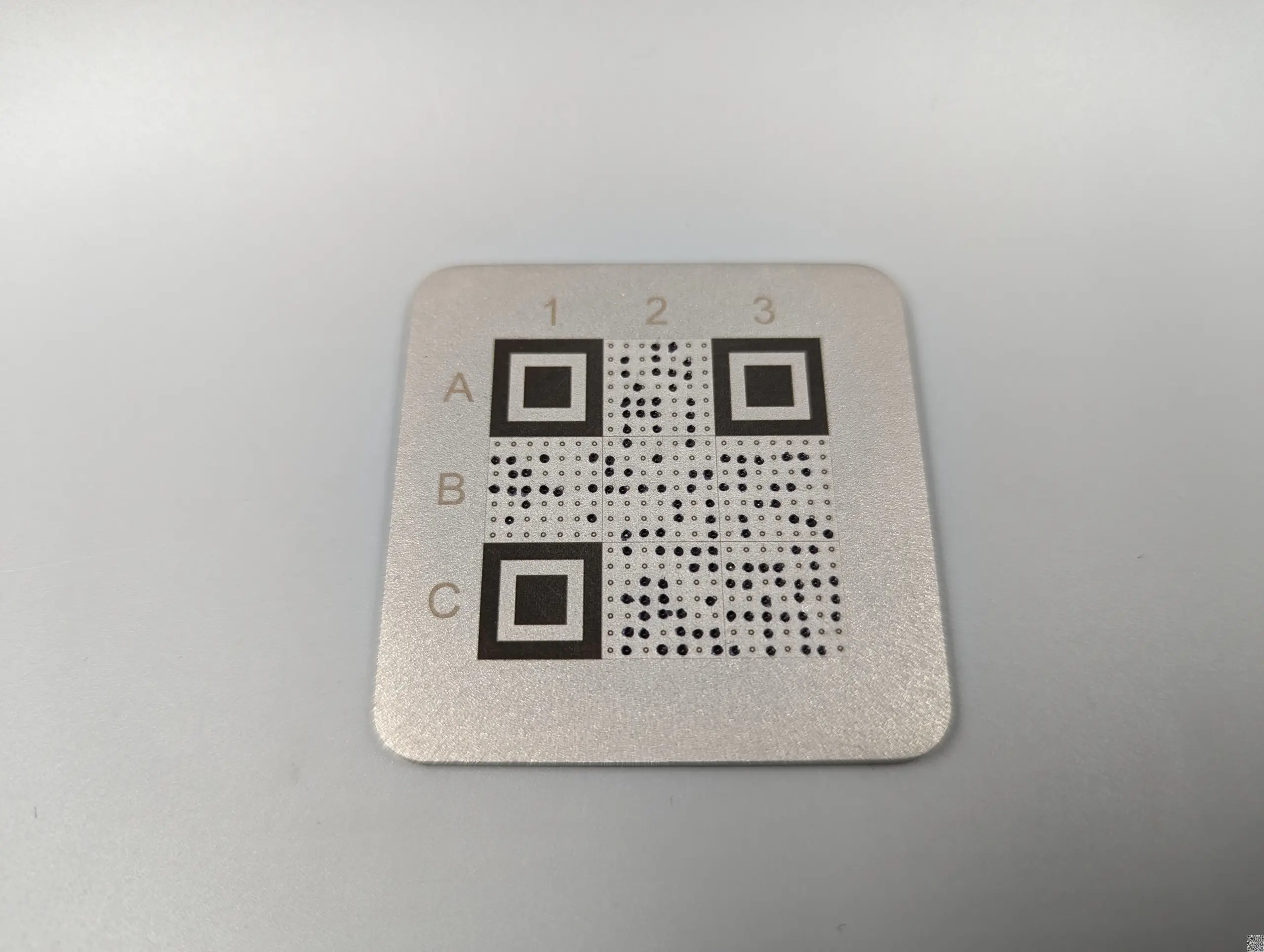 Transcribe your SeedQR to the SteelQR Plate using the “backup seed” function of your SeedSigner and punch the marked holes to complete the QR Code. For best results, use an automatic center punch with enough punching force, like this one. It is advised to blacken out the marks with a permanent marker after punching for easier scanning.